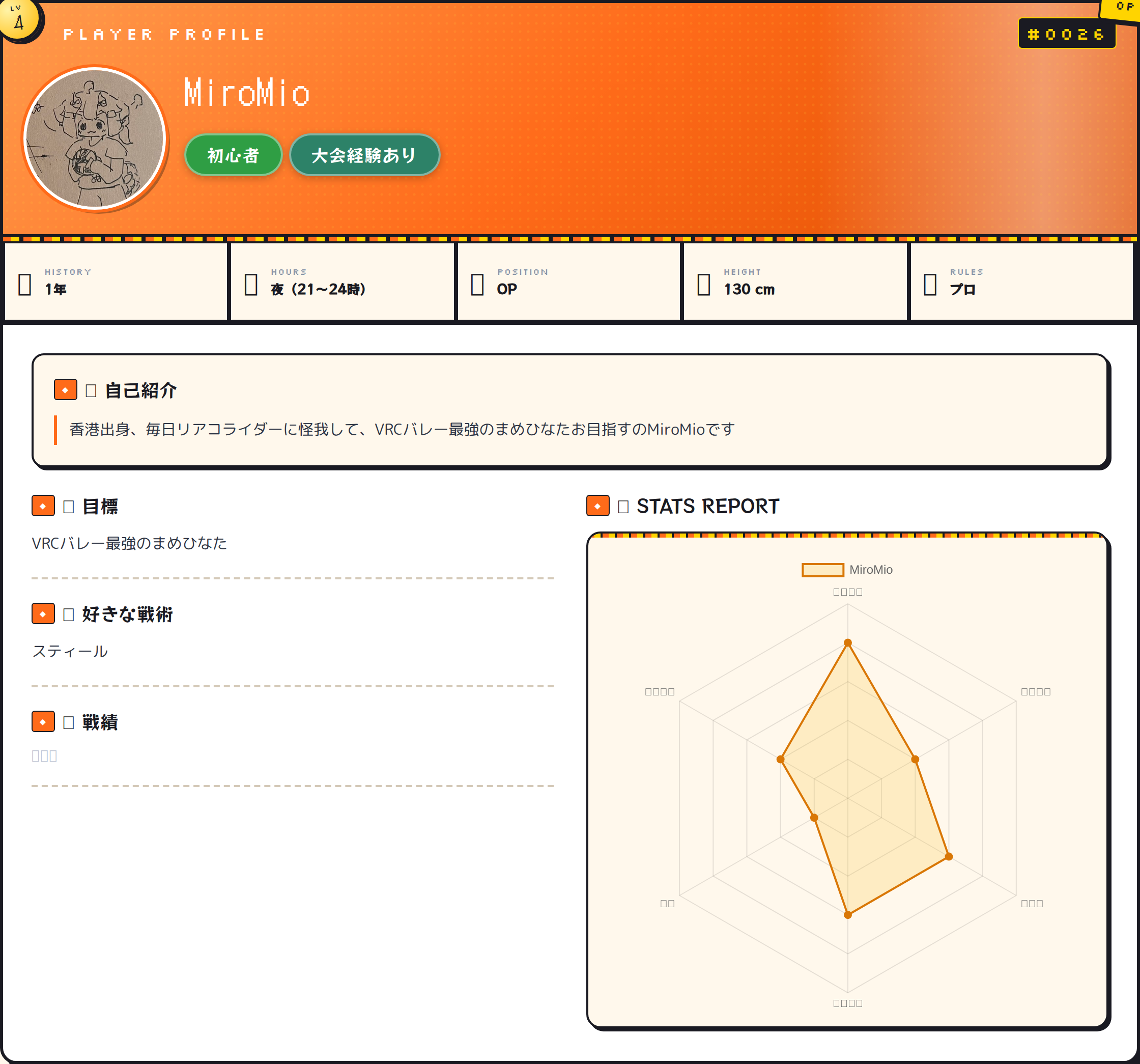 香港出身、毎日リアコライダーに怪我して、VRCバレー最強のまめひなたお目指すのMiroMioです
